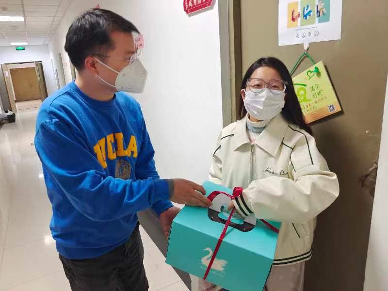 11月30日当天,恰逢公司一名被封控的同学过生日,公司联系后勤部门为过生日的同学订制蛋糕,共同度过这个终生难忘的生日。