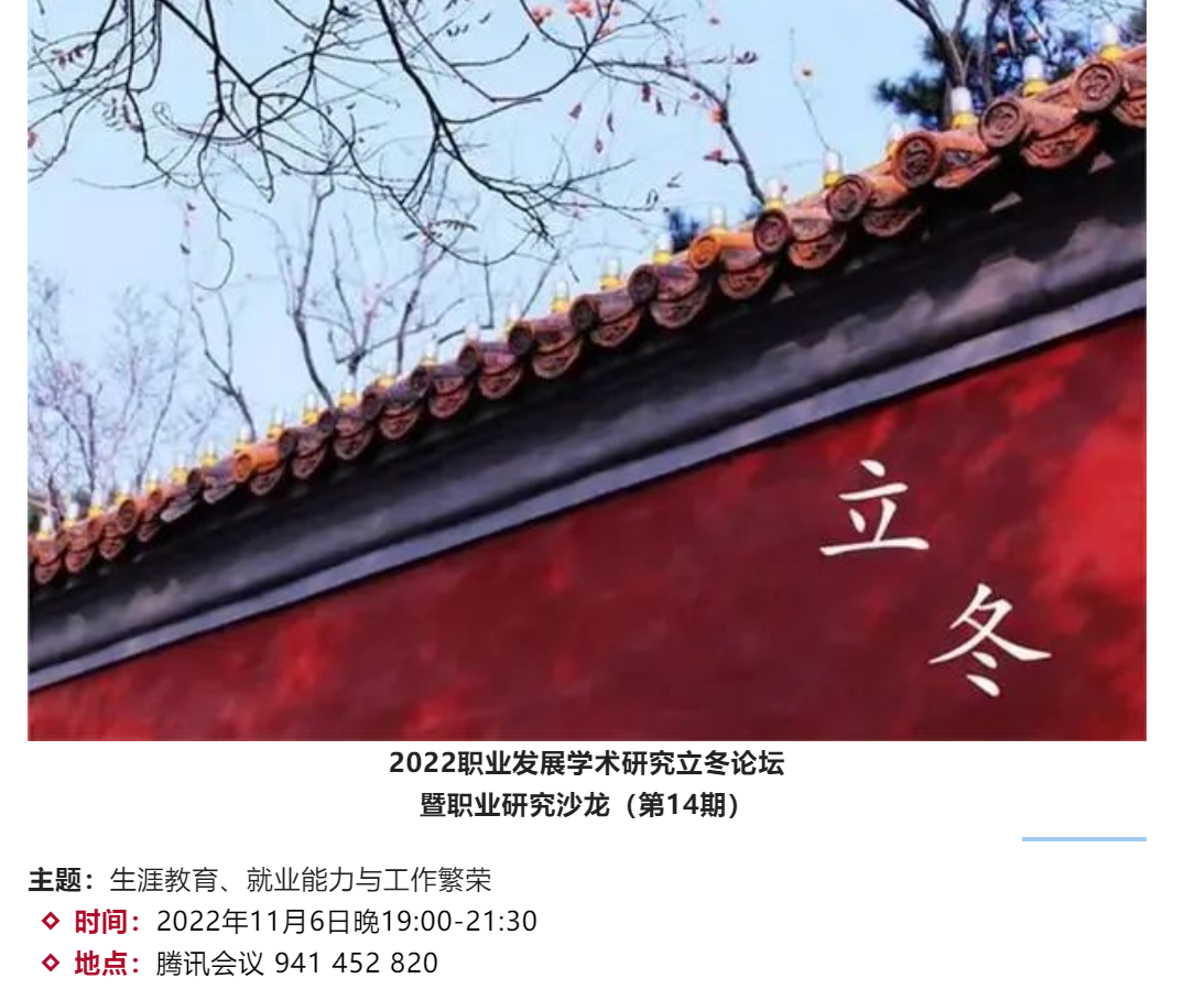 2022.11.142022职业发展学术研究立冬论坛暨职业研究沙龙(第14期)成功举办