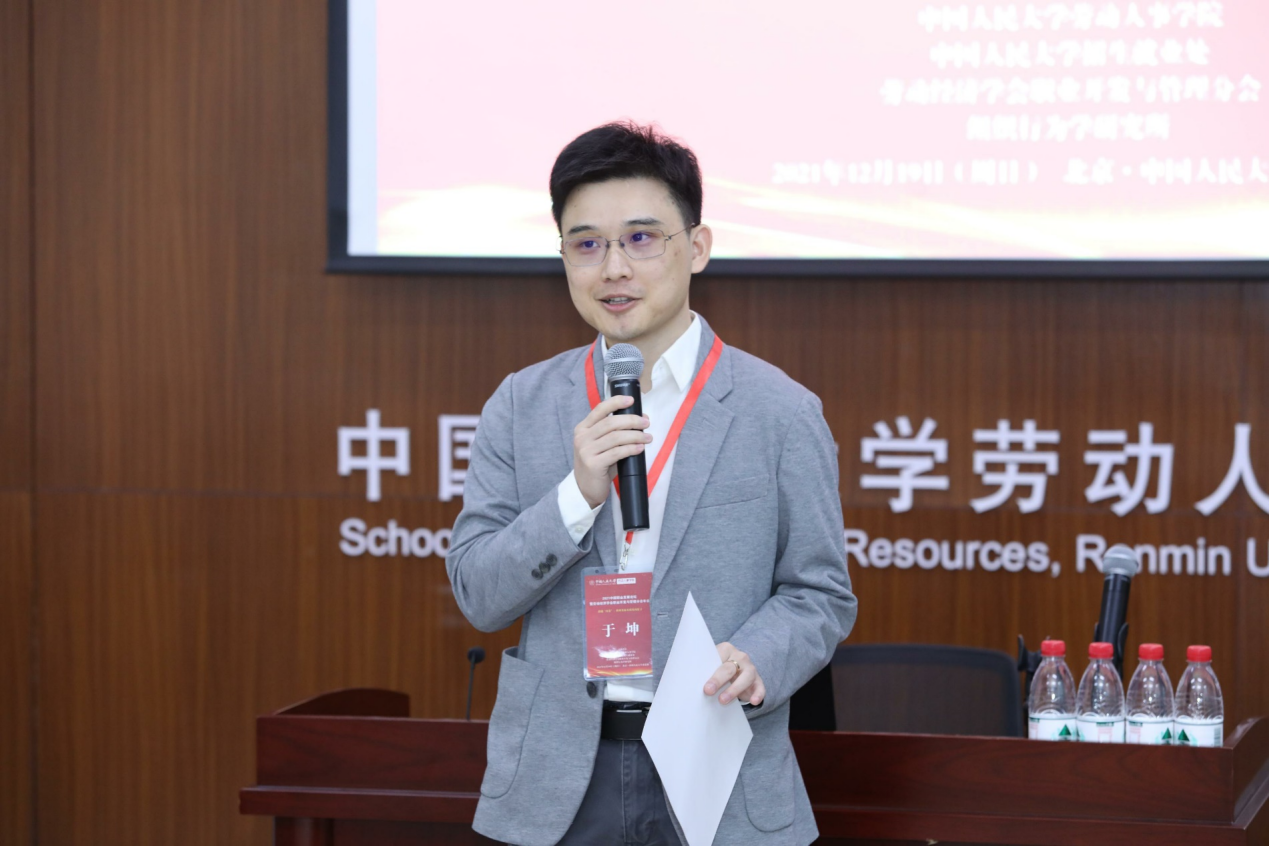 随后,三位优秀论文获奖者代表作论文报告。第一位是首都经济贸易大学劳动经济公司人才学系教授苗仁涛,报告题目为“工作不安全感是导致员工离职还是工作投入:内外部自我职业生涯管理双中介机制效应”。第二位是中国劳动关系公司劳动关系与人力资源公司讲师高雪原,报告题目为“基于扎根理论的零工工作压力感知形成机理:以外卖骑手为例”。第三位是北京大学员工心理健康教育与咨询中心副主任、副教授庄明科,报告题目为“高校职业生涯发展咨询工作室建设标准研究”。
