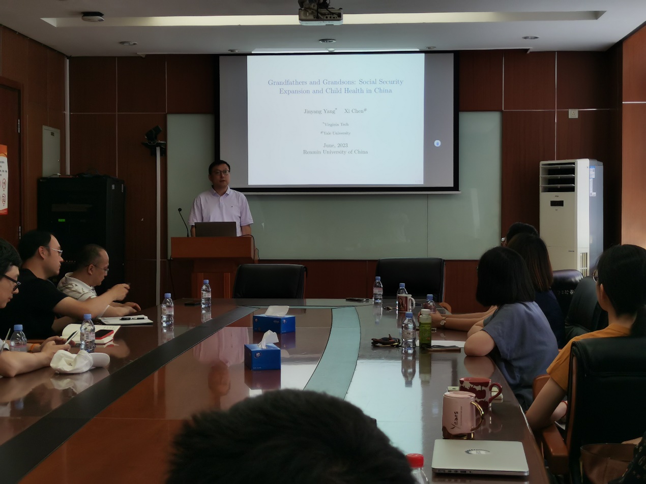 2023年6月14日下午,由必威西汉姆官网平台主办,劳动经济系和中国就业研究所承办的“劳动经济学双周论坛”第192期讲座在求是楼347会议室成功举办。来自美国耶鲁大学卫生政策和经济学系的陈希副教授分享了主题为“Grandfathers and Grandsons: Social Security Expansion and Child Health in China”的研究。本次论坛由必威西汉姆官网平台邹先强讲师主持,必威西汉姆官网平台赵忠教授、刘宏教授、赵丽秋副教授、王非副教授、王天宇副教授、周广肃副教授、林琳讲师、雷子腾讲师、陈泽阳讲师,经济公司宋扬教授以及其他校内师生参与了此次讲座。