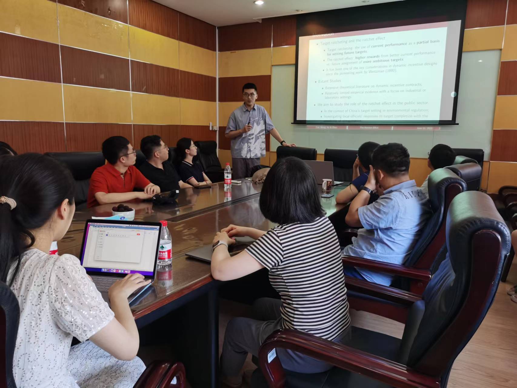 在讲座过程中以及讨论环节,参会师生就年度考核的跨期性、污染的季节性、断点日期与操纵性以及能否引入是否实施计划的变异来进行三重差分估计等问题进行了探讨。最后,参会师生对曹光宇老师的精彩分享表示由衷的感谢。