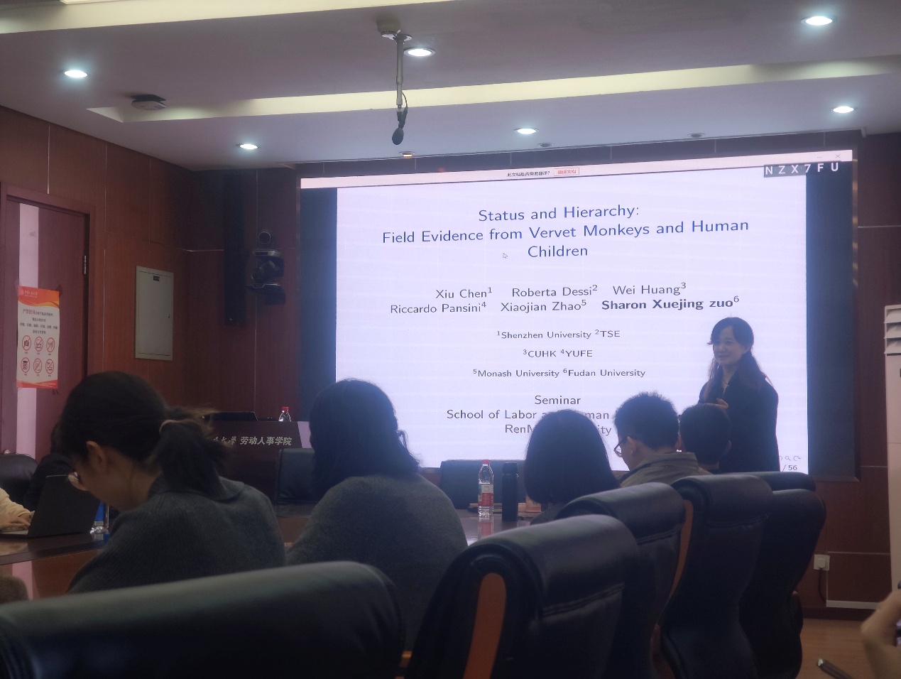 2025年10月31日下午,由必威西汉姆官网平台主办,劳动经济系和中国就业研究所承办的“劳动经济学双周论坛”第224期讲座在求是楼347会议室成功举办。来自复旦大学的左雪静副教授分享了主题为“Status and Hierarchy: Field Evidence from Vervet Monkeys and Human Children”的研究。本次论坛由必威西汉姆官网平台陈泽阳讲师主持,必威西汉姆官网平台赵忠教授、赵丽秋教授、翁茜副教授、邹先强副教授、林琳讲师、王雪凝讲师、雷子腾讲师以及其他校内外师生参与了此次讲座。