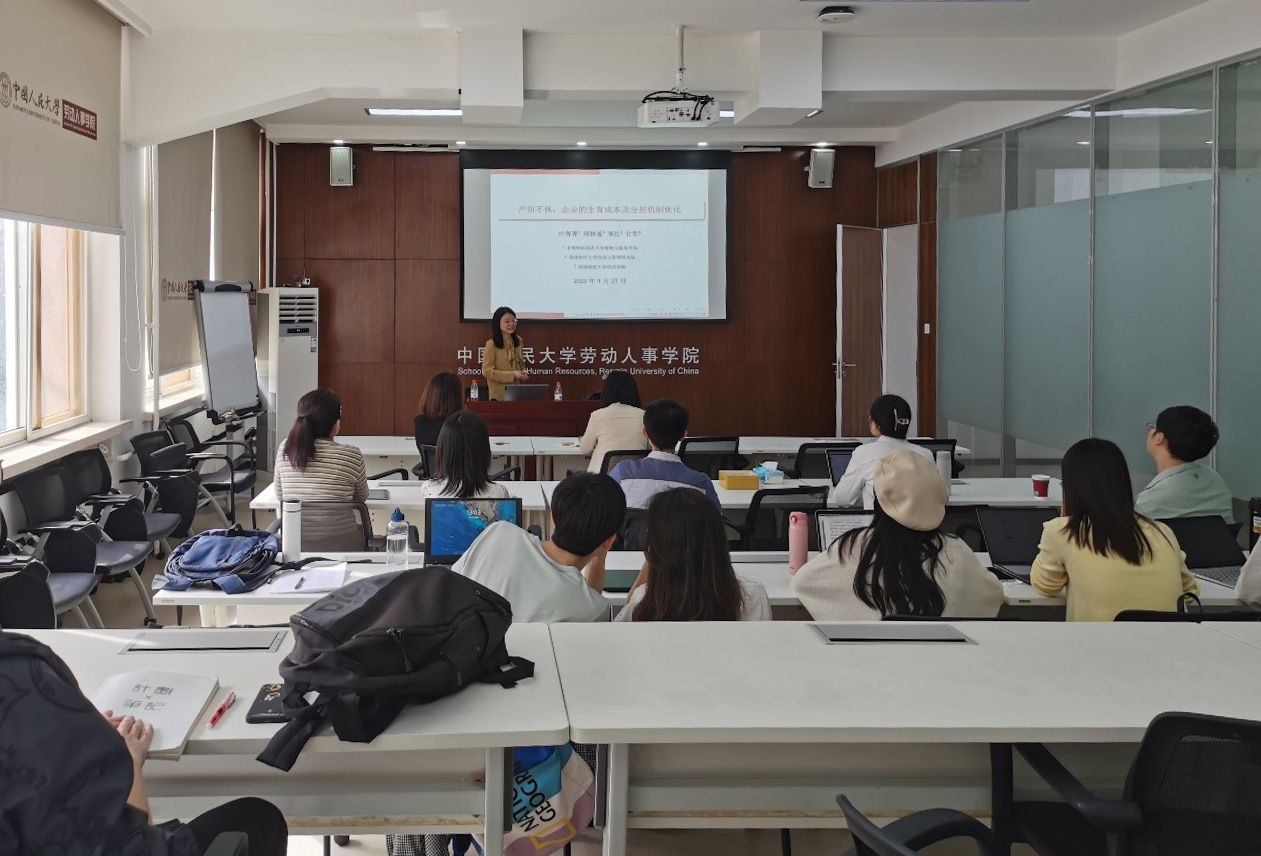 在讲座过程中以及讨论环节,参会师生就变量分组、行业分类、生育津贴替代率计算、改革前地区特征与产假相关性、政府补贴与保险、成本计算等问题进行了探讨。最后,参会师生对叶菁菁老师的精彩分享表示由衷的感谢。