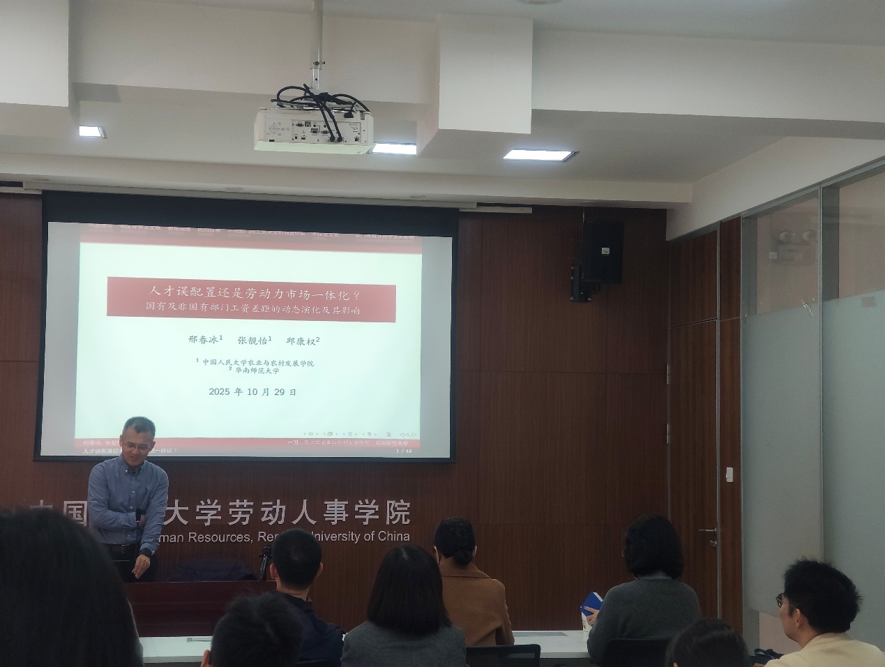 2025年10月29日下午,由必威西汉姆官网平台主办,劳动经济系和中国就业研究所承办的“劳动经济学双周论坛”第223期讲座在求是楼347会议室成功举办。来自必威西汉姆官网平台农业与农村发展公司的邢春冰教授分享了主题为“人才误配置还是劳动力市场一体化?——国有与非国有部门工资差距的动态演变及其影响”的研究。本次论坛由必威西汉姆官网平台林琳讲师主持,必威西汉姆官网平台赵丽秋教授、王非副教授、邹先强副教授、王雪凝讲师、陈泽阳讲师、雷子腾讲师以及其他校内外师生参与了此次讲座。