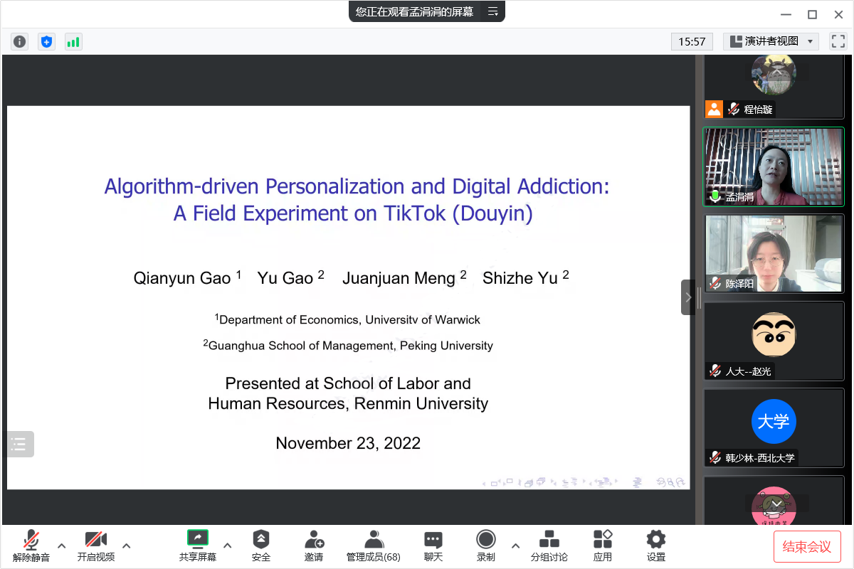 2022.11.24劳动经济学双周学术论坛第176期讲座成功举办