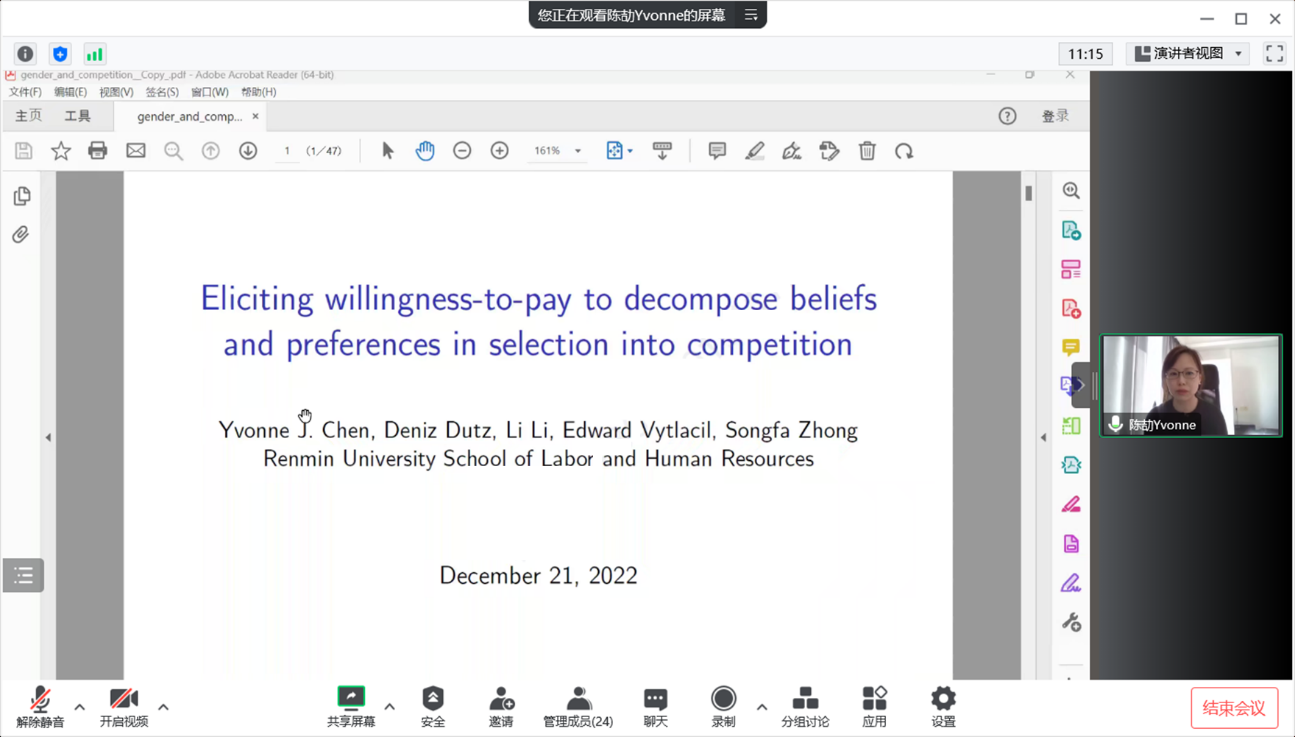 2022.12.24劳动经济学双周学术论坛第180期讲座成功举办