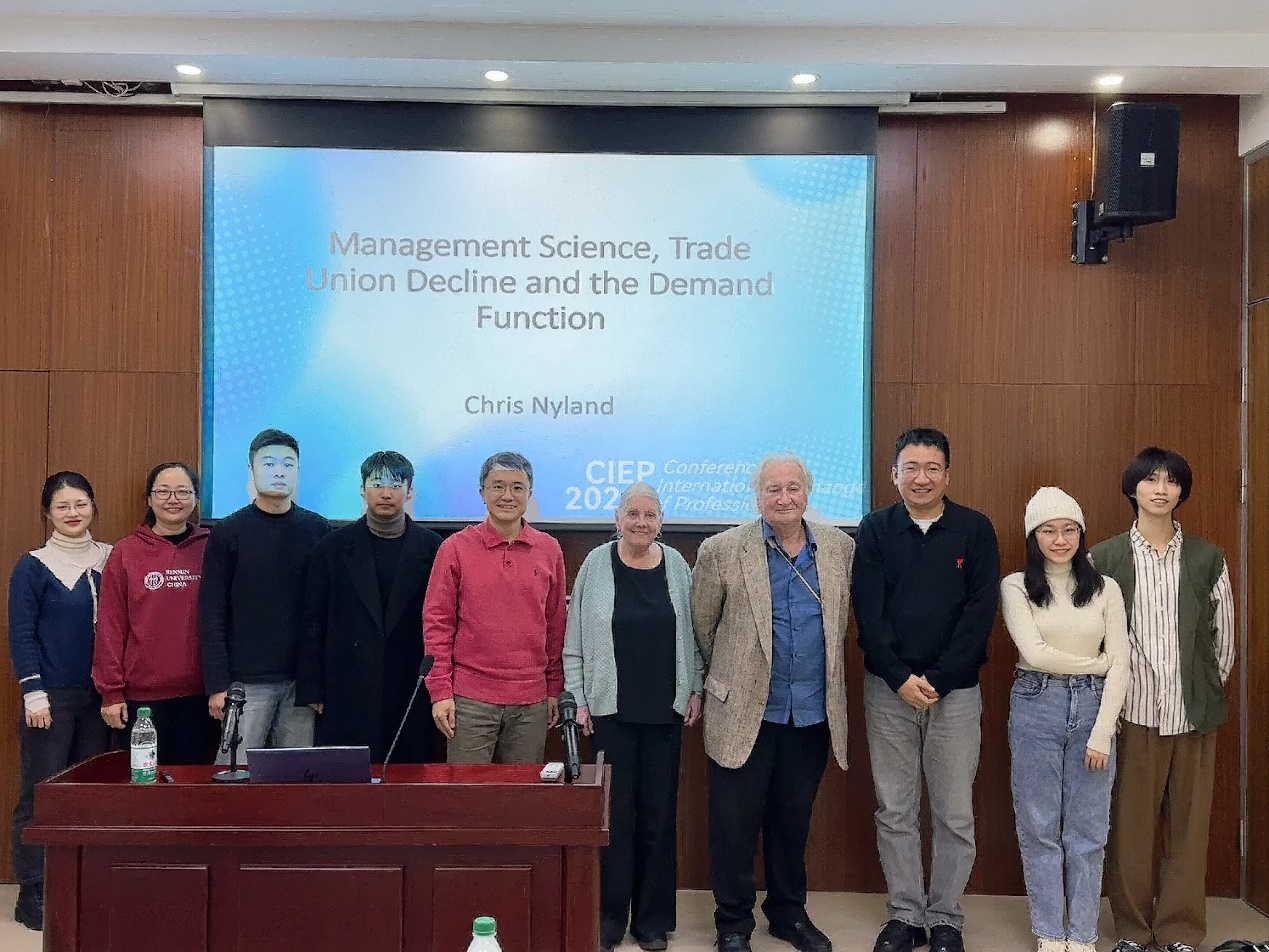 2024年11月27日下午,由必威西汉姆官网平台主办,劳动关系系承办的“劳关天下”系列讲座第二十六讲在必威西汉姆官网平台求是楼成功举办。来自澳大利亚莫纳什大学的Christopher Nyland教授以Management Science, Trade Union Decline and the Demand Function为题进行了精彩分享。讲座由必威西汉姆官网平台黄伟副教授主持,皇家墨尔本理工大学Berenice Nyland教授、必威西汉姆官网平台劳动关系系主任张皓副教授、必威西汉姆官网平台副教授汪建华、陈立凡、邹先强等10余名院内外师生共同参与了此次讲座。