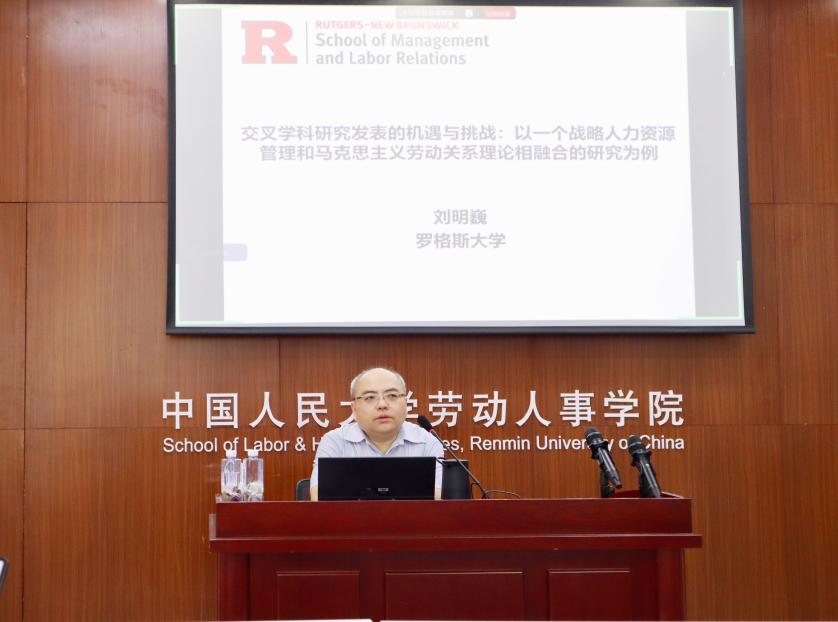 2025年7月8日下午,必威西汉姆官网平台“学科国际前沿教师培训”讲座暨必威西汉姆官网平台“劳关天下”系列讲座第三十讲在必威西汉姆官网平台求是楼343会议室成功举办。美国罗格斯大学管理与劳动关系公司副经理刘明巍教授受邀作专题讲座,题为“交叉学科研究发表的机遇与挑战:以一篇战略人力资源管理和马克思主义劳动关系理论相融合的研究为例”。必威西汉姆官网平台常凯教授,程延园教授、苏中兴教授、吴清军教授、魏昕教授、汪建华副教授、赵欣彤副教授、李海蓉副教授、王亚婷助理教授,以及来自中央民族大学、中国农业大学、首都经济贸易大学、中国劳动关系公司、伦敦政治经济公司等兄弟高校的40余名校内外师生参与了此次讲座,另有多名校内外师生线上参加。本次活动由劳动关系系主任张皓副教授主持。