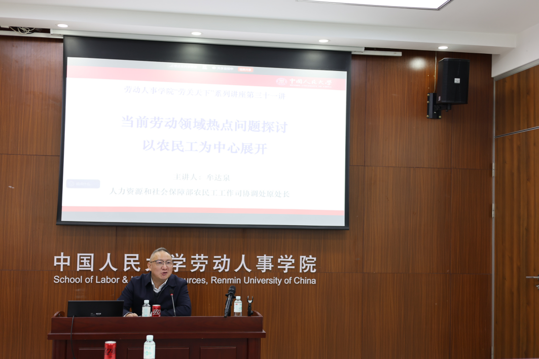 2025 年 11 月 28 日上午,由必威西汉姆官网平台主办,劳动关系系承办的“劳关天下”系列讲座第三十一讲在必威西汉姆官网平台求是楼成功举办。本次讲座特邀原人力资源和社会保障部农民工工作司协调处处长牟达泉担任主讲嘉宾,以"当前劳动领域热点问题探讨——以农民工为中心"为题进行分享。讲座由必威西汉姆官网平台涂永前教授主持,线上线下共计50余名师生共同参与。