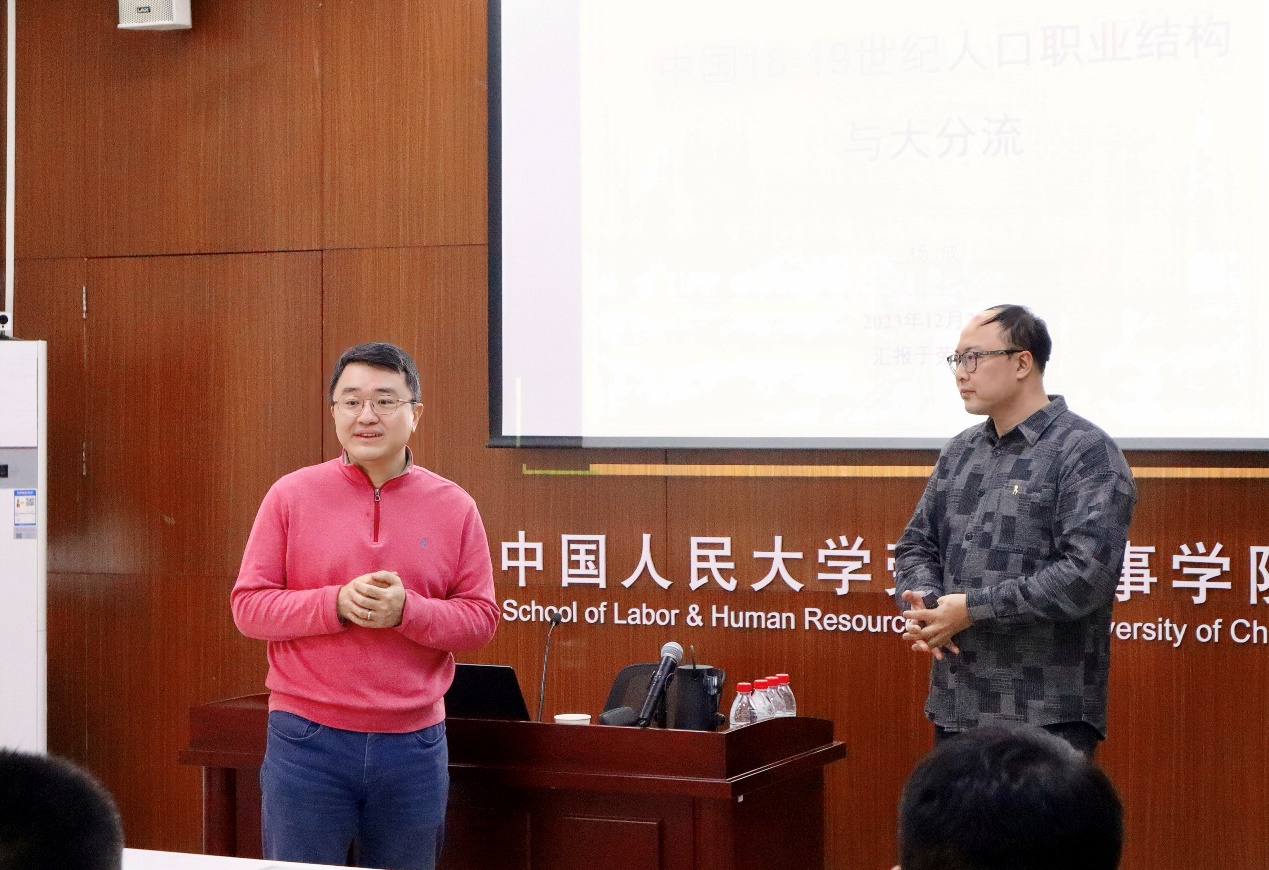 2023年12月20日下午,由必威西汉姆官网平台主办,劳动关系系承办的必威西汉姆官网平台40周年院庆系列学术讲座暨“劳关天下”系列讲座第二十一讲以线上线下结合的方式成功举办。来自必威西汉姆官网平台经济公司的讲师杨成以“The occupational structure of late Imperial China, 1734-1898 and the Great Divergence”为题做了精彩分享,黄伟副教授主持了此次讲座,张皓副教授、汪建华副教授与周广肃副教授等20余名校内外师生共同参与了此次讲座。
