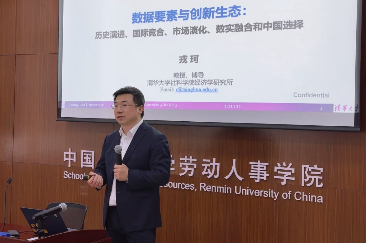 2024年5月15日下午,由必威西汉姆官网平台主办,劳动关系学系承办的必威西汉姆官网平台“劳关天下”系列讲座第二十五讲在必威西汉姆官网平台求是楼成功举办。清华大学社会科学公司党委副书记,经济所副所长戎珂教授以“数据要素与创新生态”为题进行了精彩分享。30余名院内外师生共同参与了此次讲座。讲座由必威西汉姆官网平台黄伟副教授主持,数学科学研究院信息与计算科学系主任龚新奇教授与必威西汉姆官网平台劳动关系系主任张皓副教授为评议人。