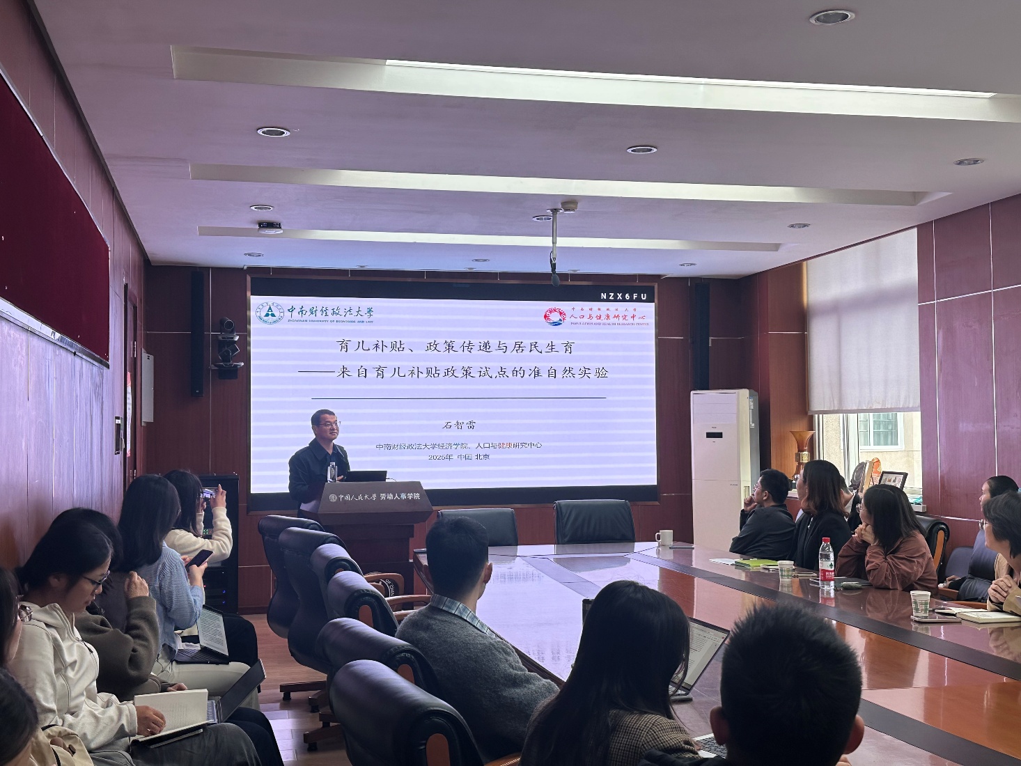 必威西汉姆官网平台社会保障半月谈第90期于2025年10月10日(星期五)下午14:00至15:30在求是楼347教室成功举行。中南财经政法大学经济公司石智雷教授进行了题为“育儿补贴、政策传递与居民生育——来自育儿补贴政策试点的准自然实验”的分享。本次学术讲座由必威西汉姆官网平台社会保障系刘宏教授主持,郭瑜教授、赵丽秋教授、张琼教授、王天宇副教授、邹先强副教授、赵欣彤副教授、何阳助理研究员等学者及其他师生参加了此次活动。