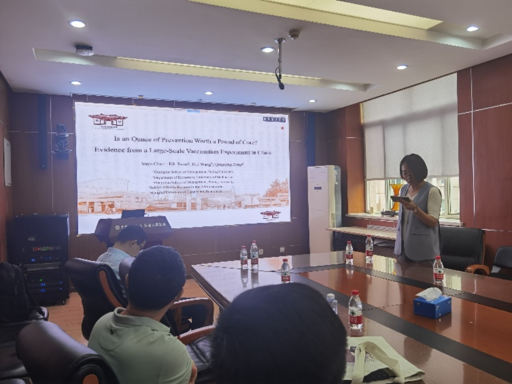 在讲座过程中以及讨论环节,参会师生就研究对象、预防接种的间接成本、疫苗保护效率随时间的变化、控制变量的选取等方面问题进行了探讨。最后,参会师生对宗庆庆老师的精彩分享表示由衷的感谢。